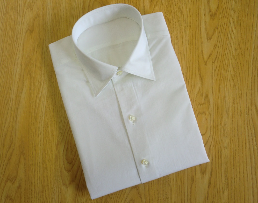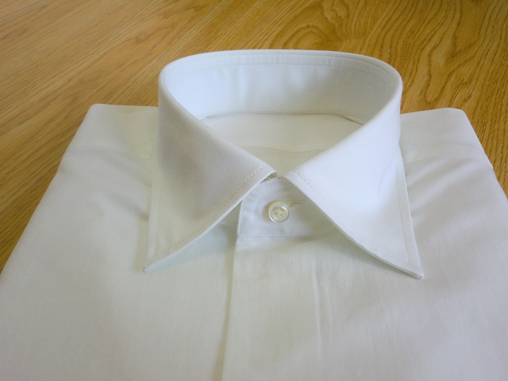 ▲衿の長さ、衿の開き共に本来の意味で着た時に最もバランスが適当なものを目指した衿型で、オーダー メイドシャツの定番といえます。
